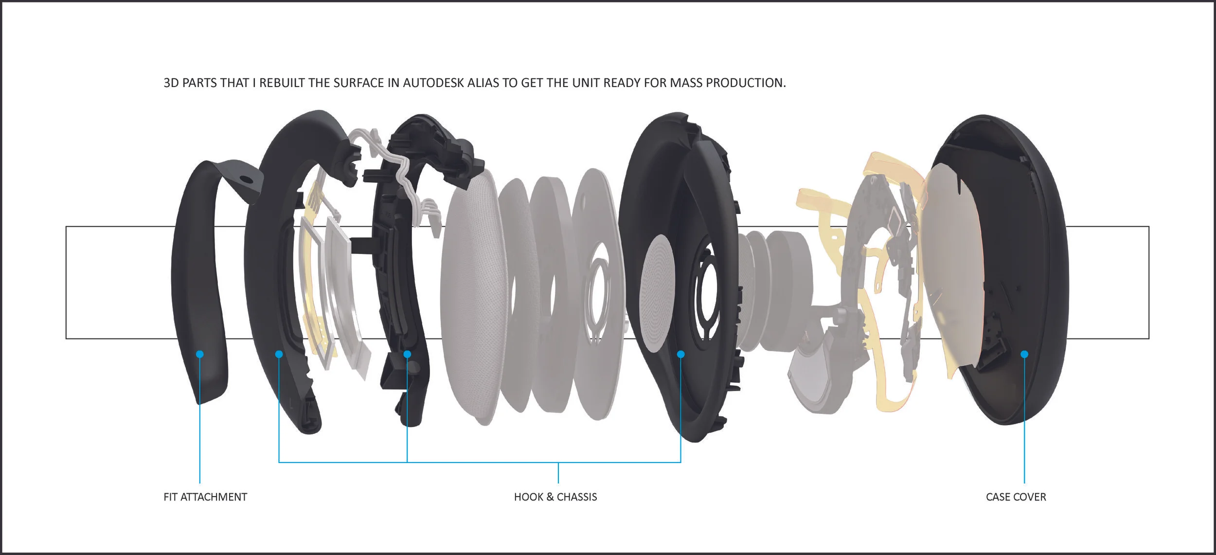 Designed multiple fit attachment accessories and produced small production of high-fidelity prototypes for ongoing user testing.