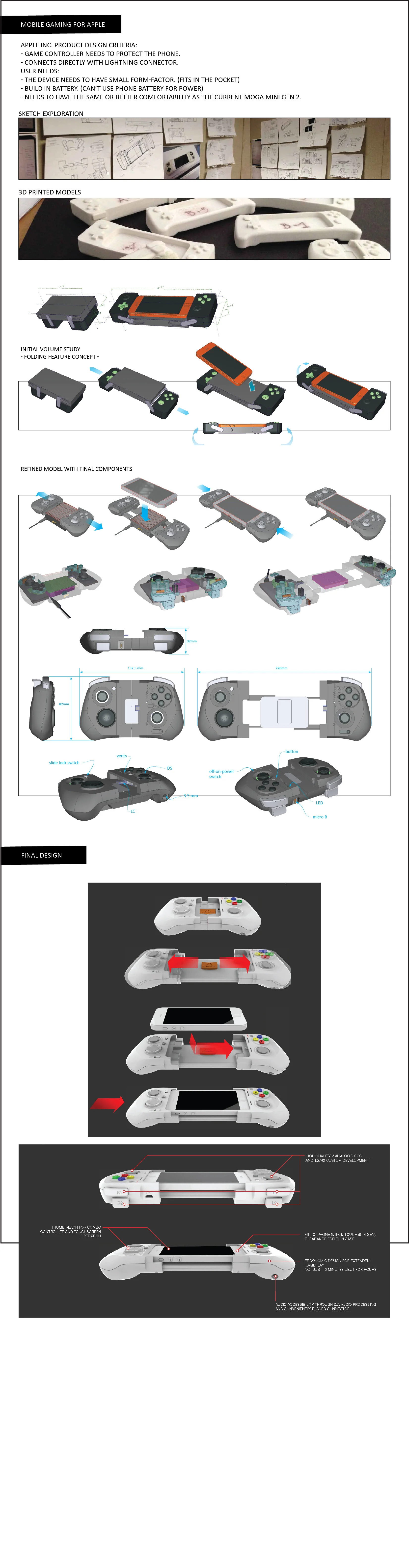 As the Sr. Industrial Designer, I led the design to find the best form factor that is compact for mobility without sacrificing game experience that the user has on a traditional game console controller.